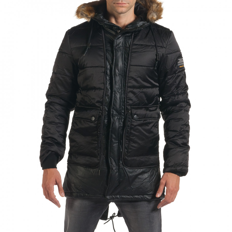 • Ανδρικό μαύρο χειμωνιάτικο μπουφάν XZX-Star it190616-11 2